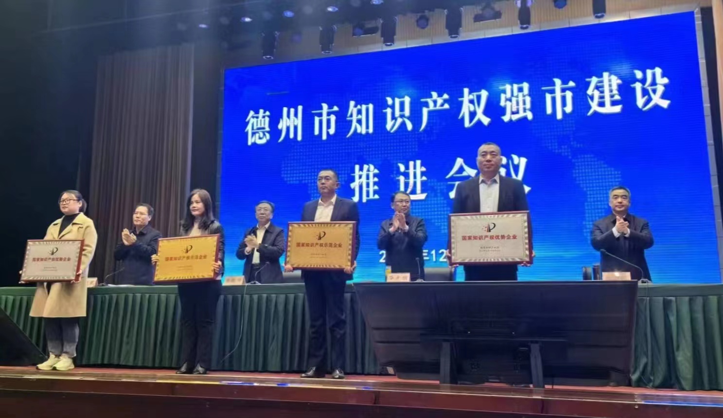 12月13日,德州市知識產(chǎn)權強市建設推進(jìn)會(huì )議在禹城召開(kāi),在董事長(cháng)田總的正確指導和鼓勵下,晶華藥玻獲得國家知識產(chǎn)權優(yōu)勢企業(yè)的榮譽(yù)。晶華藥??偨?jīng)理劉興旺代表田總、代表藥玻公司上臺領(lǐng)獎。